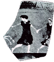 The picture to the right is from a shard of a painted pottery cup found at Brauron, a region near Athens that was sacred to Artemis. These young arktoi, or "bears," are thought to be performing the sacred "bear dance" in honor of the goddess. In the classical period, Artemis was associated with initiation rituals at all stages of a young woman's life up until that all-important first child was born.