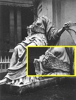 A full-sized reproduction of the Pheidias statue has been constructed out of a fiberglas alloy and set up inside the reconstruction of the Parthenon in Nashville's Centennial Park. Scroll down to get a look at the statue. Don't miss the sacred serpent at her side, inside of her shield. This photo was taken before they gilded her in 2002--which looks closer to the ancient original but to modern eyes appears rather gaudy. You can see the gilded version here if you want to, but I don't think you'll like it much. Well, I know I don't.