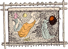 here is taken from a children's storybook and shows Arachne, already a spider, perched