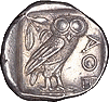 Athene's sacred owl and olive branch. There even used to be a catch saying, kind of like the