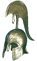 Another protege was Perseus, the slayer of the snake-haired gorgon Medusa. As described in the caption to the gruesome illustration in our textbook, he was so grateful he bestowed the gorgon's head, snakes and all, upon Athene in return for her assistance. This is why Athene is usually depicted wearing a snake-trimmed shield or cloak called the aegis, which produced instant widespread panic whenever she shook it. The aegis also had a protective function for those she sheltered beneath it; thus the phrase "under the aegis of" someone or something who protects or sponsors you.