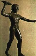 Because the Olympic games were the most prestigious, Zeus became associated with athletes. The 5th-century (B.C.) Greek poet Pindar was known for his odes that drew on stories of the gods, including Zeus, to parallel and praise the athletes who competed in the various games. The ancient travel writer/historian Pausanias, writing in the second century A.D., tells how in the Altis, the sacred grove dedicated to Zeus at Olympia, there were a number of bronze statues of Zeus that had been paid for out of the fines levied on athletes who cheated (you don't need to read the entire page here--just the first three or four paragraphs. It's a very long excerpt). I recently read an article in a news magazine that was scandalized by the "recent" upswing in Olympic athletes who cheat, and I couldn't help wondering what the author would have thought of all those statues in the Altis.